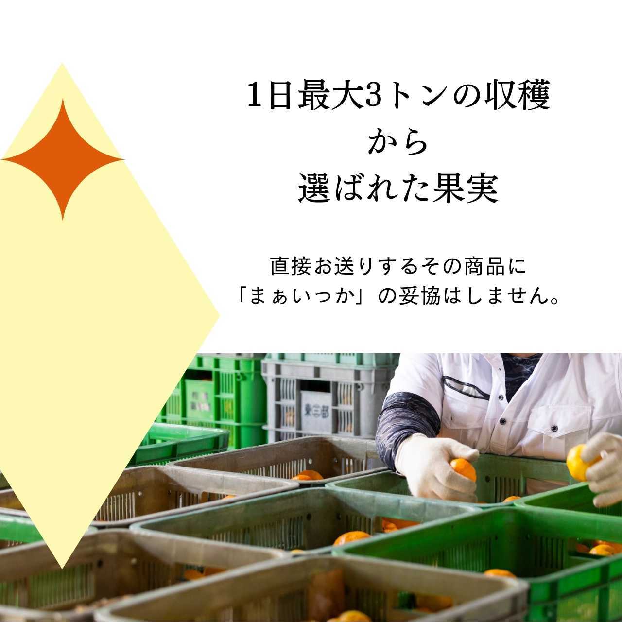 私たちが何より大切にしているのは、お客様の元へ届き、箱を開けて召し上がるその時に、みかんが一番おいしく感じていただける状態でお届けすることです。特別な言葉で飾ることはできませんが、農園から直接お届けする強みを生かし、一つひとつのみかんの表情を丁寧に見極め、ベストな状態のものを箱にお詰めしています。